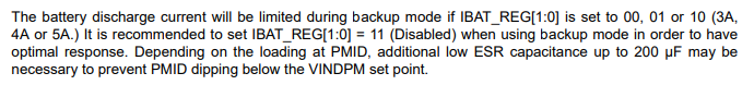 When charger is removed can i boost the battery voltage to 15v and get this in PMID pin ? what is the limitation of the current when USB charger is plugged and during this backup boost mode how to configure and use this mode please help
