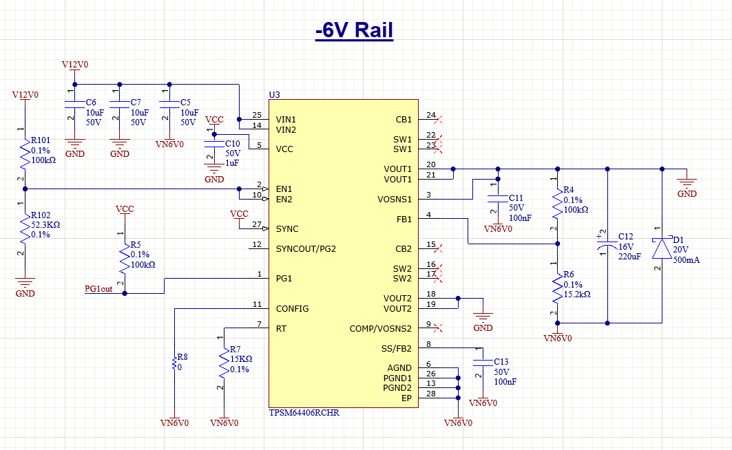 I'm from the Medical SEM team and I'm working on a custom board for a customer. We want to use the TPSM64406 on this board, and I'm wondering if it would be possible to make +6 / -6 power rails with this part. I saw that it mentions "Negative output voltage capability".