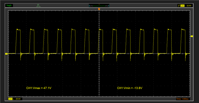 the Vmax is 47V and the Vmin is -14V on SW pin when Vout=38VDC.