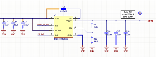 - The mode pin is permanently pulled to VCC and therefore according to the data sheet in forced PWM mode
