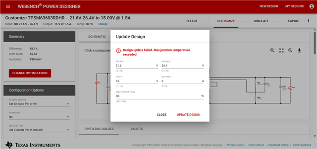 In WEBENCH® POWER DESIGNER, I entered the following condition.