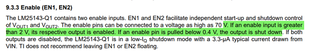 Using the resistive ladder what we did was we power the Enable pin with the VIN supply itself, hence the voltage at enable is a direct function of VIN supply.