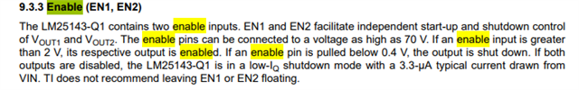 Please use the resistive ladder at the EN and see if it improves the behavior. Till then let me look for other solutions.