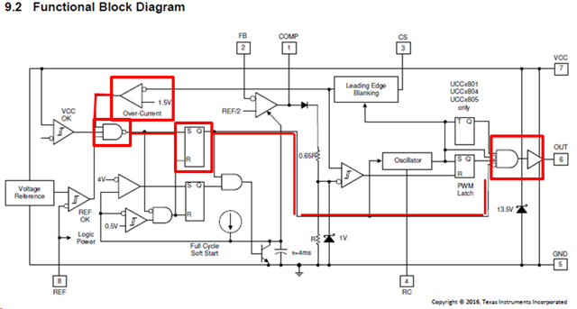 Is this the time when the output PWM is turned off after detecting the overcurrent comparator 1.5V?