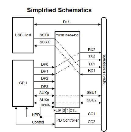 They are using TUSB1046A cross point switch, which expects HPDin, block diagram is shoiwng HPDin connected from PD controller
