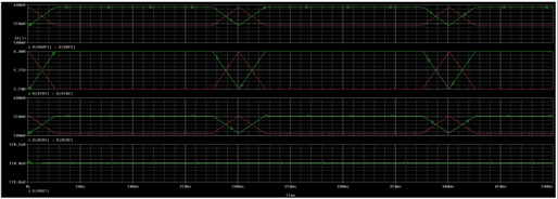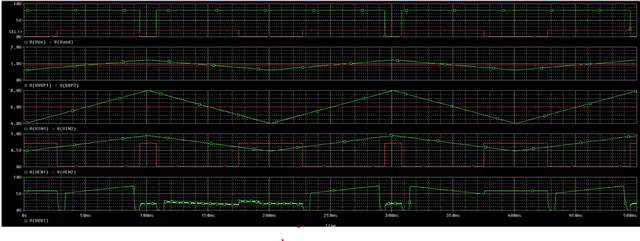 I was able to get the sim to run/show, by adjusting the soft start from .35n to .35u. However, there is some oscillation which requires further debugging. I will get back to you with an update on debugging as soon as I have one or by the end of the week at the latest.