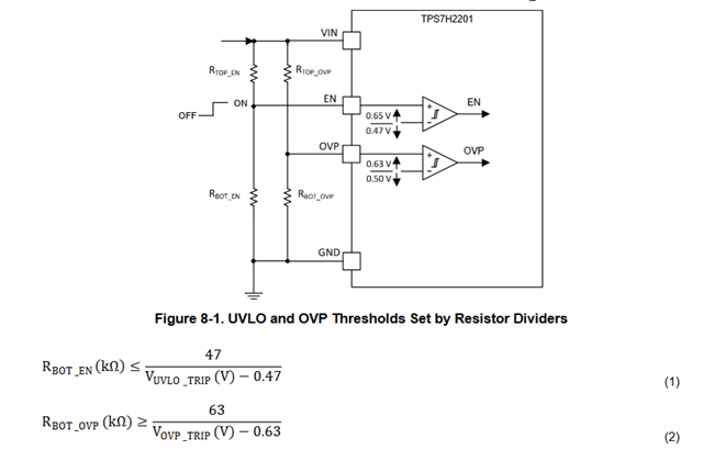 I used the equation in the datasheet to adjust the ENable and OVP resistors. I still can not enable the eFuse. can you please clarify the problem ?