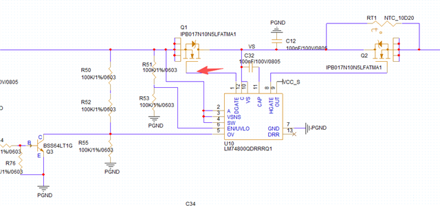 The customer tested with 30V, VDGATE 33V,HGATE 41V, Q1 heat up,Q2 normal.