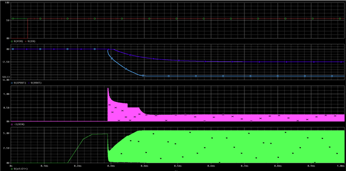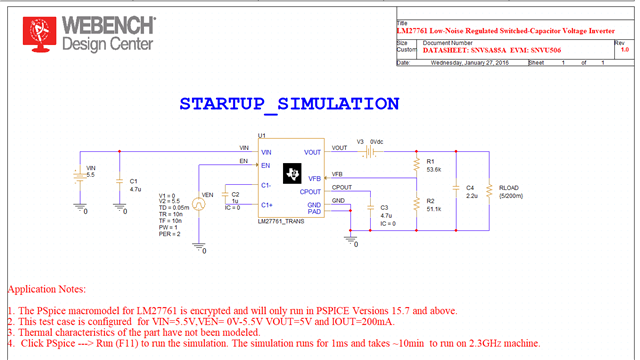 I could not get PSPICE transient simulation for LM27761 to converge. I was trying for -2.5V supply. What could be the issue?