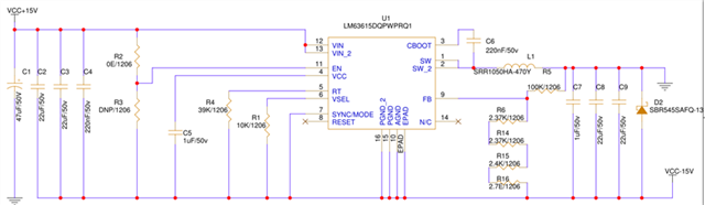 I have designed an IBB circuit using the LM63615-Q1 IC, referencing the application note. The design schematic is attached for your review.