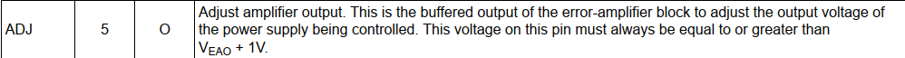 The voltage of the VEAO pin is the same as the voltage of the voltage sense amplifier CSO (correct me if I am wrong) which in my case is around 2V. So the voltage of the ADJ pin should be greater than 3V.