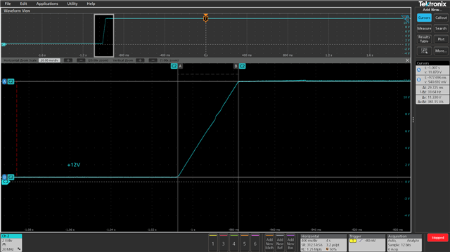 When setting the Rise time of +12V, the minimum is only 30ms. Even if the configuration screen is set to 20ms, the actual waveform is 30ms.