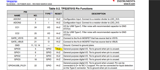 My customer is currently designing with TPS25751S and has a question regarding the proper treatment of unused GPIO pins.
