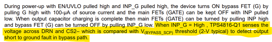 My application needs to start capacitive loads so I use a soft start mosfet with some series resistors connected to G and controlled by INP_G as per the datasheet. The main mosfets are connected to GATE and controlled by INP.