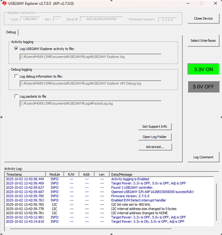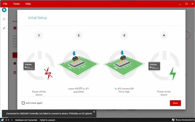Customer can't connect GUI with the EVM. Customer have complete USB2ANY FW update as below, and see I2C pull-up works. Is there any possibilities that they can' connect EVM with the GUI?