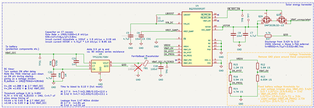 - TPS22917 datasheet does not specify leakage on QOD during normal operation (ON). I assume it is sufficiently high but I also don't want leakage during normal operation and discharge duration can be quite long. Hence an additional resistor to the internal 150 Ohm of 4.7kOhm was added.