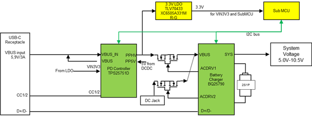 Customer has been use TPS25751+BQ25790 as below. So for sink PPHV is used only for sink, and PP5V is used for source use-case. And VBUS_IN pin and VBUS pin are shorted. (5V/9V PD sink, USB Type-C current source)