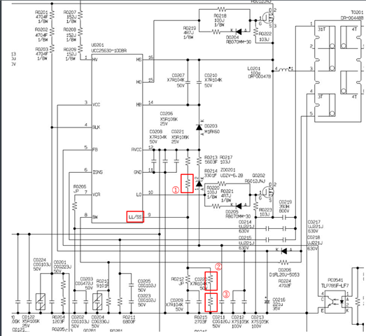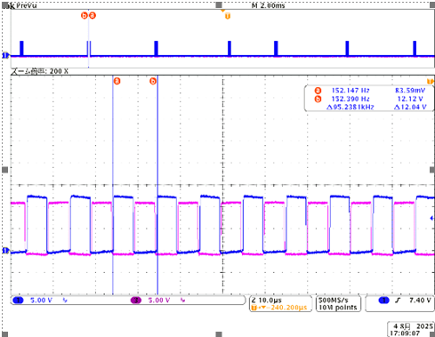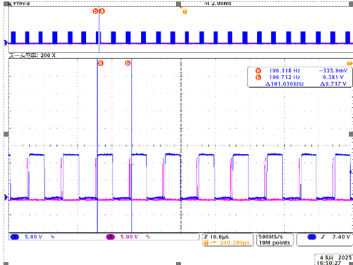 After changing the resistance values in the surrounding circuit on the customer's board as shown below, the operation recovered to match the normal waveform:
