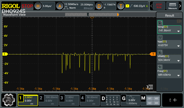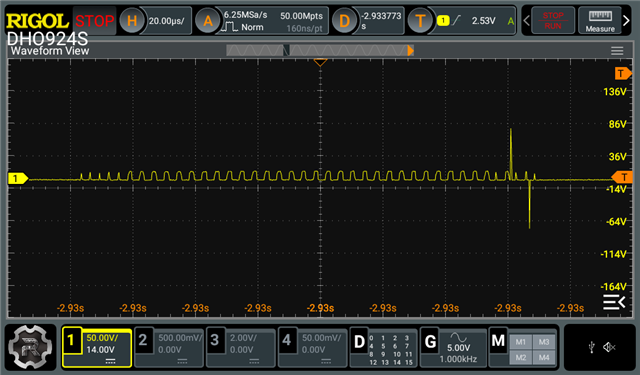 When I measured the Lr node, I found that the switching occurs at a very low frequency, around 1Hz. I have carefully reviewed my schematic but cannot identify the cause of this issue.