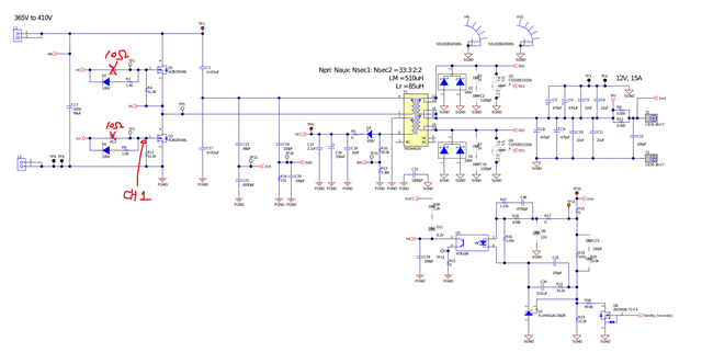 I am designing a 550W battery charger using the UCC256403, referencing PMP40766 as a design guide.