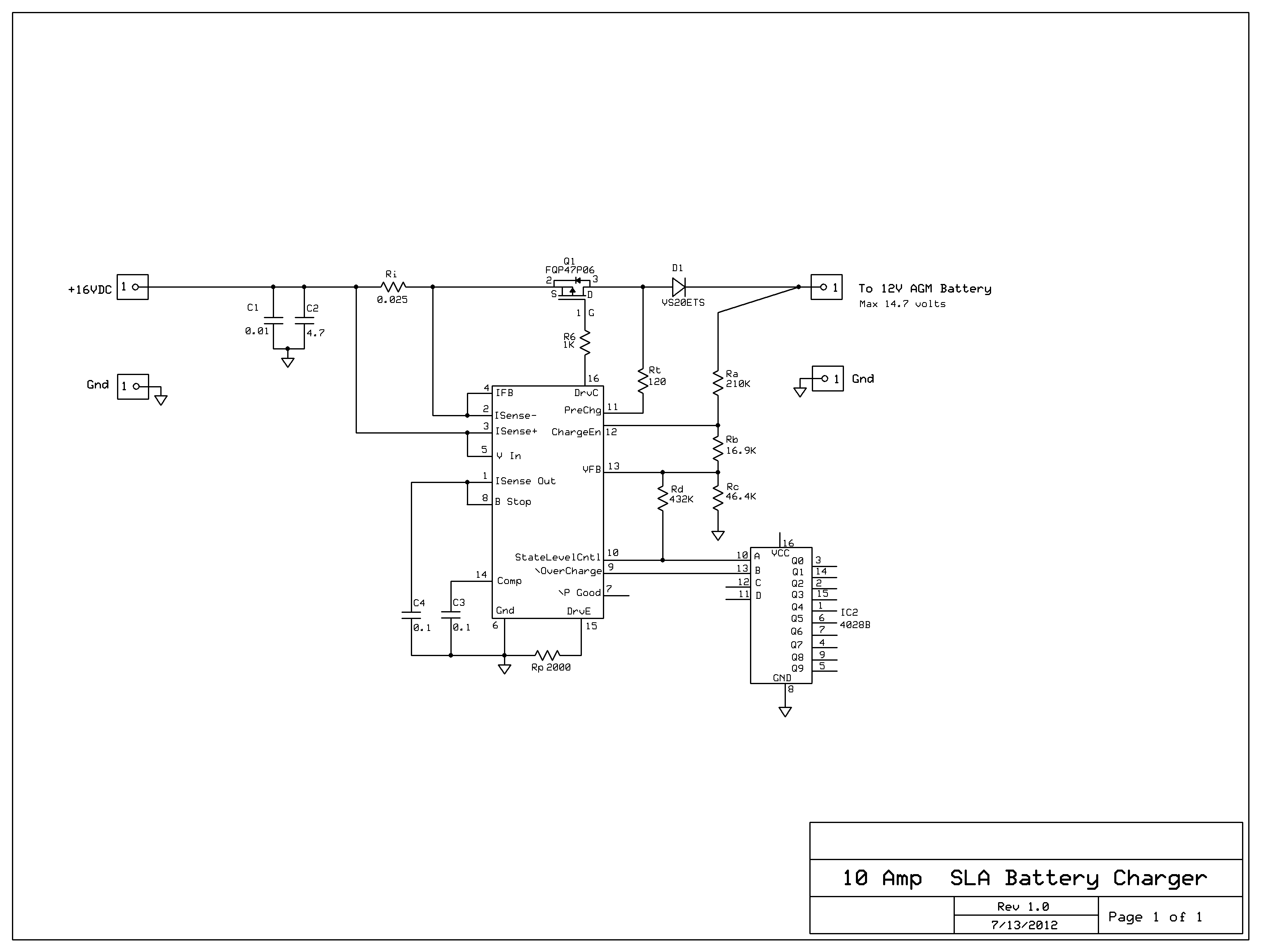 I wonder if you could comment on my design for a 10 amp charger for a 12 volt SLA battery. It will be AC powered with a DC input of 16 volts when the AC is 115 VAC.