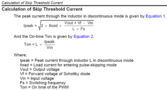 4503.Pulse-Skipping.pdfIn the application report "SLVA353–July 2009", the author presents 2 formula to generate the threshold current which cause the controller entering pulse skipping mode in page 2. The application that the author use as an example is boost circuit. The 2 formulas is shown in the picture.