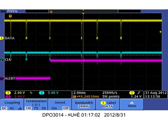 19:41.2 | SAA | 1 | 27 | TPS40422 | PAGE | 0x00 | ReadByte | ACK | 1 | 0x01 | ||||