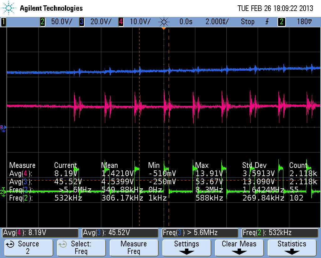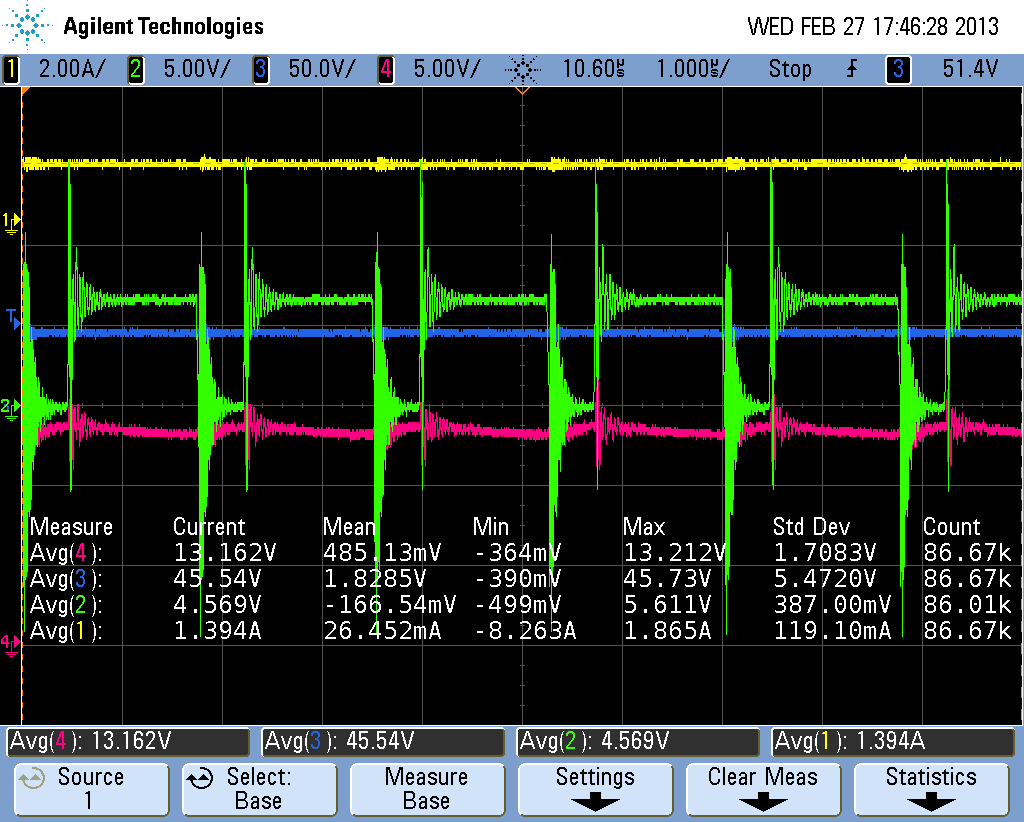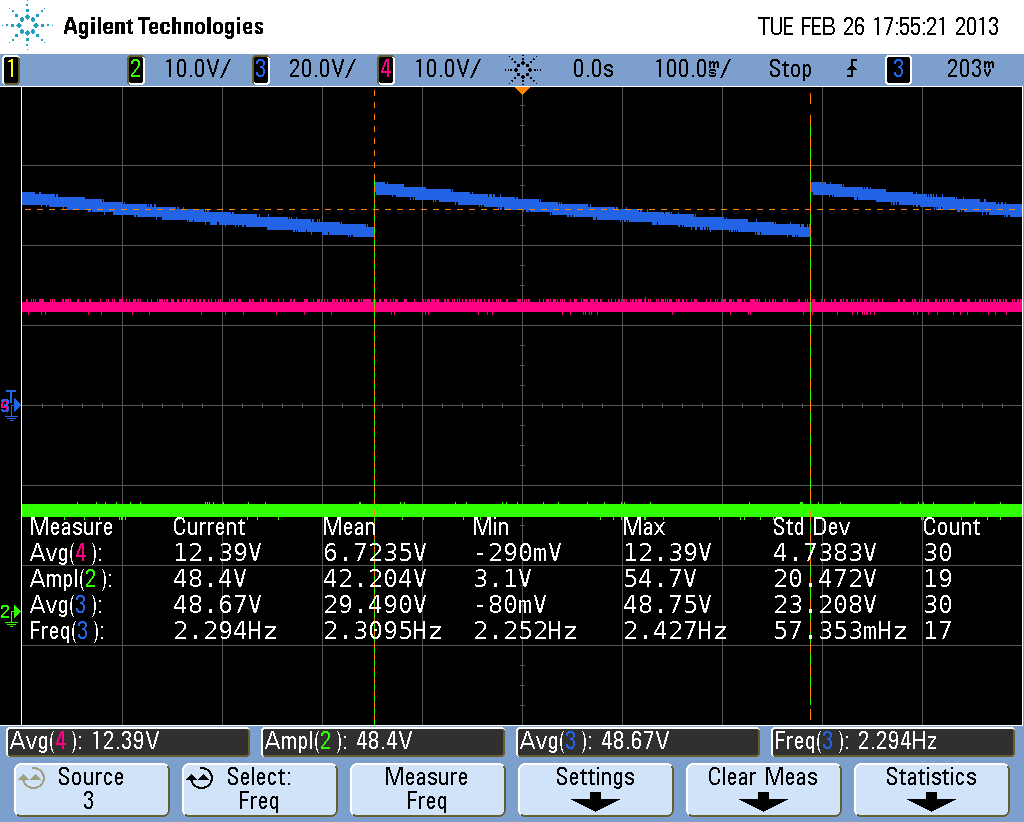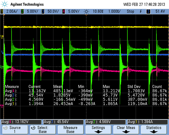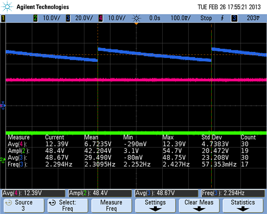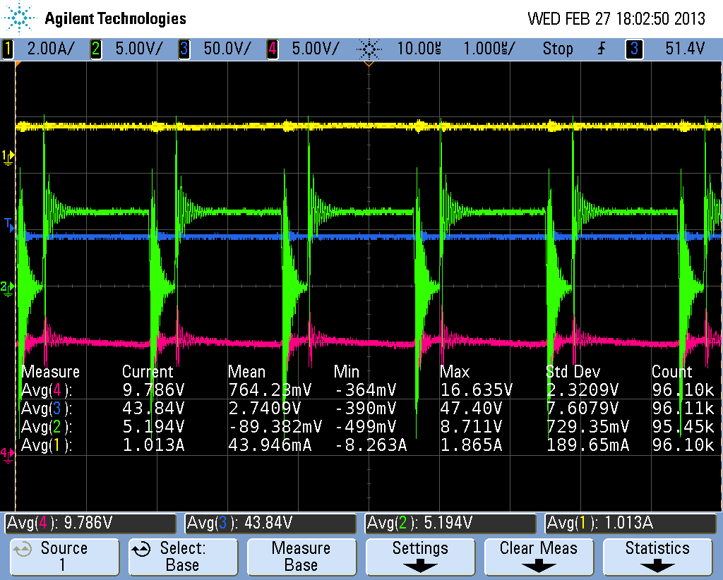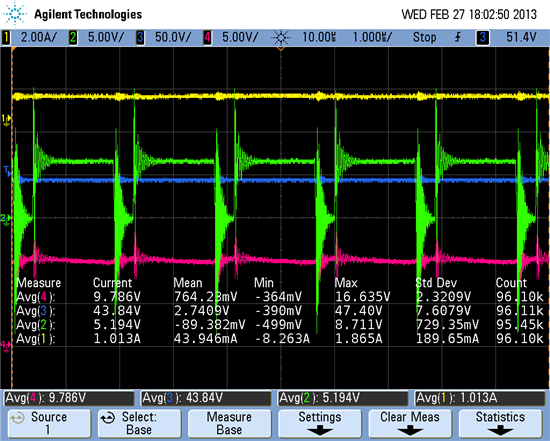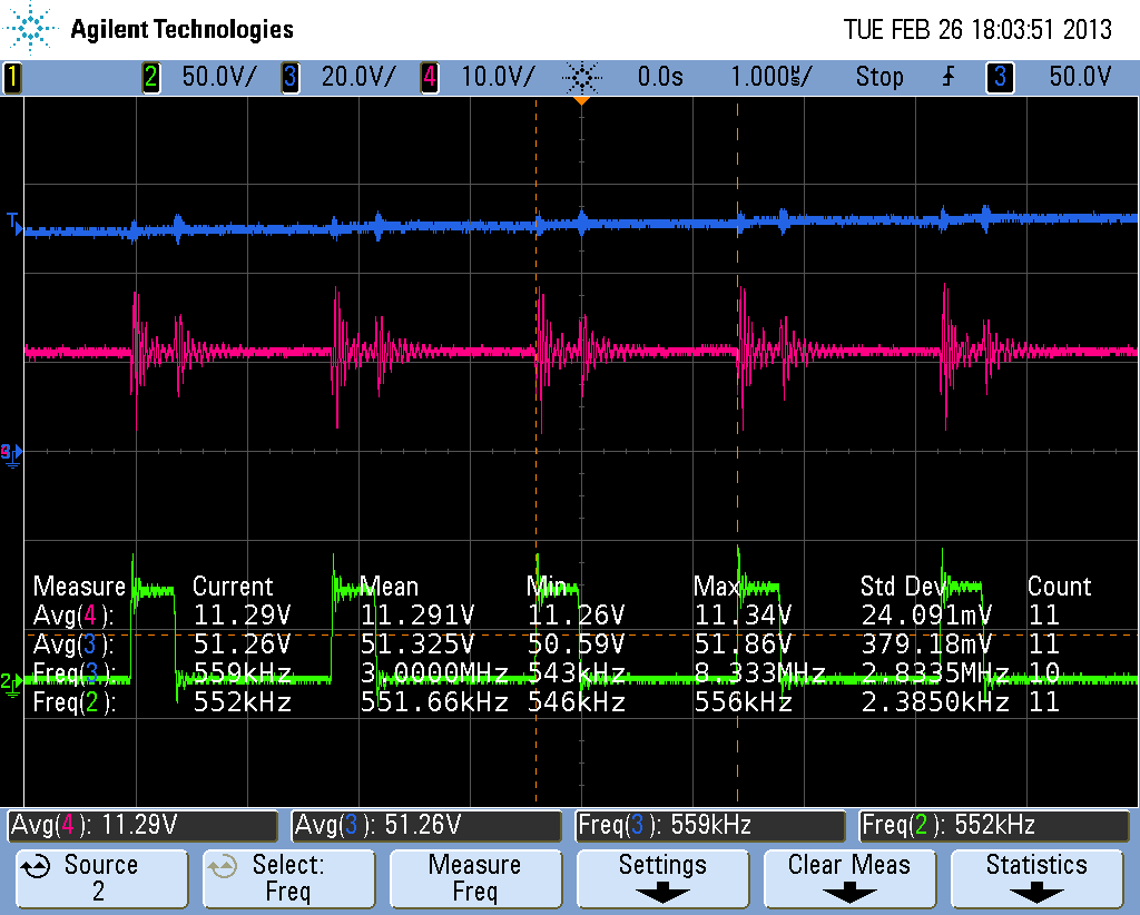 Red = Vin ,Green = Test Point 11 , Blue = Output Voltage