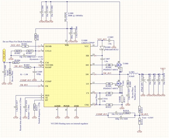 We have made two designs with the LM25117. One to output 15 volts and one to output 4.5V. The basic specifications of both designs are as follows: