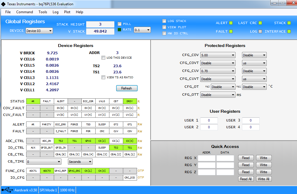 I'm trying to implement a bq76pl536 solution on a 15s pack. I'm quite surprise to see that the result in the last chip are wrong with the evaluation software, like you can see below.