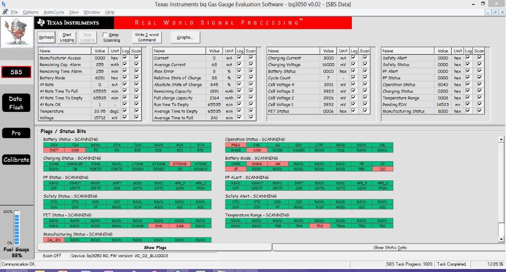 We are currently designing an electronic board with a 4S1P Li-Ion battery pack and use a BQ3050 battery gauge. After many tests, we have tuned the gauge parameters (according to the file attached) to suit our needs (4 cells, Li-Ion, 1500 mA mean discharge current, 3000 mA charge current, 3700 mAh capacity).