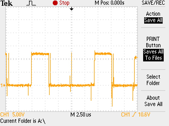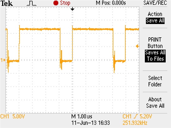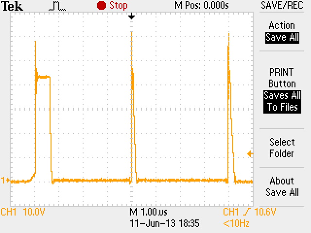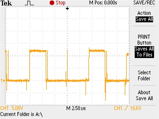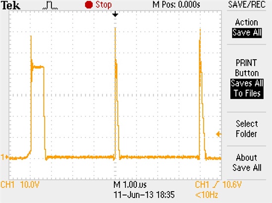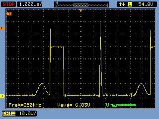 HO, gate of High side mosfet. Only the fisrt pulse is complete.