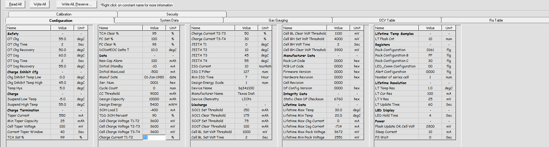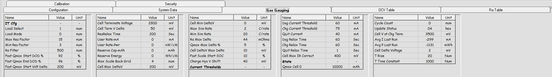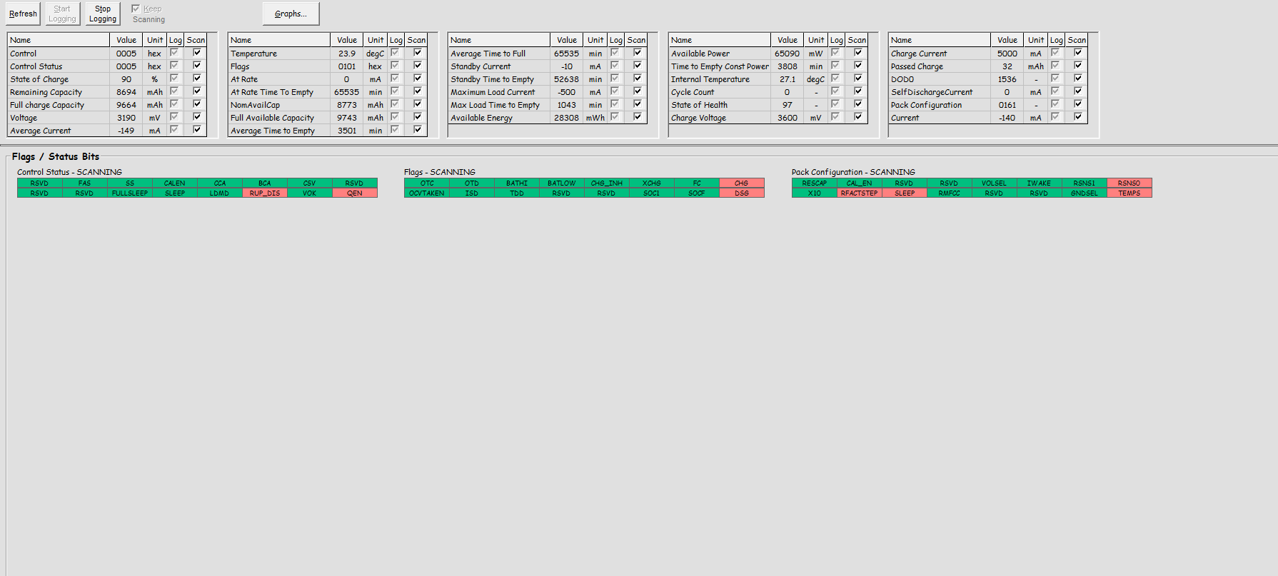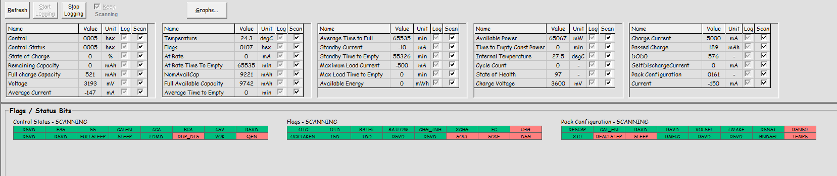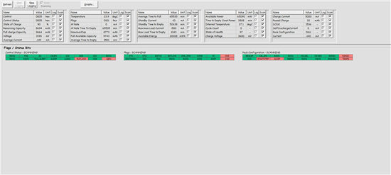 1) If the battery goes below 2.8V the flags SOC1, SOCF become red and remaining capacity becomes 0 and full charge capacity becomes some kind of arbitrary number. With these flags on and the battery is being charged the SOC1 and SOCF flags stay on and remaining cap and full charge stay the same. They won't read properly anymore until I unplug the battery, do a 0041 (reset) then plug it back in. Afterwards the numbers are correct.