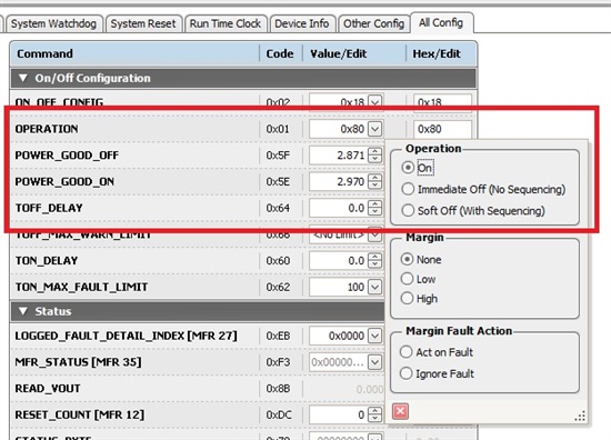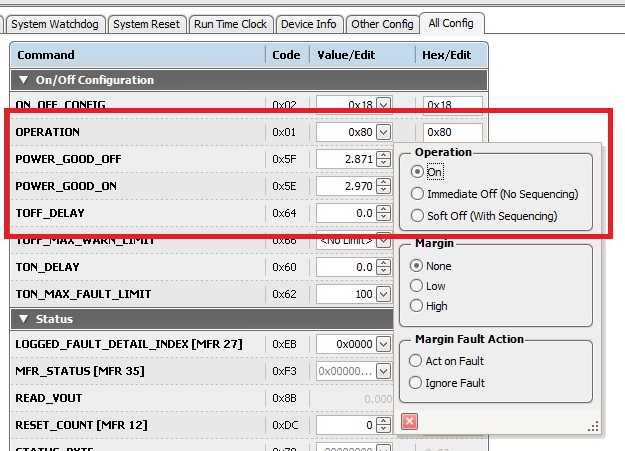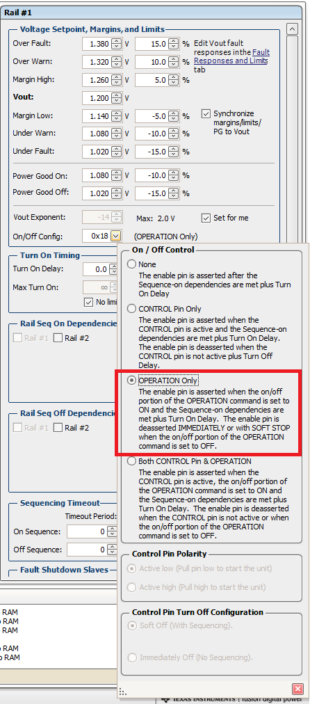 The Operation section under All Config has to do with the Operation section under Monitor. It is just another way to send the Operation command when the rail is set to Operation only: