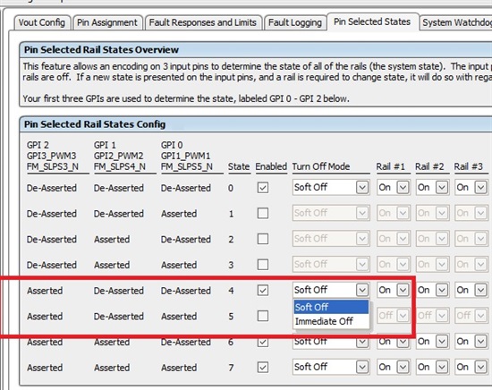 The "Pin Selected States" tab allows your first three GPIs to determine eight different system states.