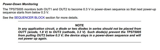 Most of times TPS75005 works fine with these voltages and times: