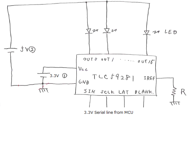 On this situation, we assume that we need to supply 3.3V into VCC on TLC59281.