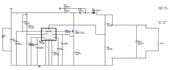 I want to build up a sepic converter with the lm3481, but it din t work. I used the Webbenchdesigner (Vin=6.5V-18V, Vout=15V, Iout=1.4A).
