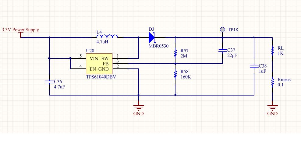 We are using a the TPS61040 for the generation of a higher voltage(28V) from battery. Our configuration is as shown in the picture below. At the output we have the 28V needed but there is an overcurrent. Our calculations give us an Iout max of 19,8 mA. We tested with various Rload and these are the results: