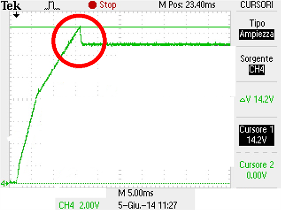 Please, could anyone give me some suggestion on how to eliminate that undesired 2 Volts overshoot at the startup?