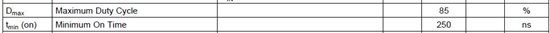 DMAX (min) is 81% and the T min (on) (MAX) is 571ns.
