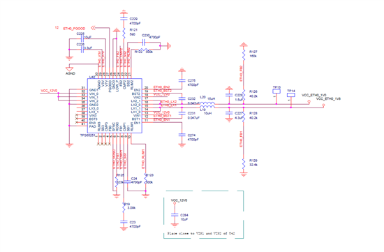 I'm trying to generate a 1.0v and a 1.8v output on buck 2 and buck 1 respectively. Buck 3 is unused and has been configured to have FB3 connected to V3V, SS3 connected to ground, and VIN3 connected to VIN as per this post http://e2e.ti.com/support/power_management/pmu/f/200/p/298257/1046233.aspx#1046233. The rest of the circuit is connected as shown in the attached schematic.