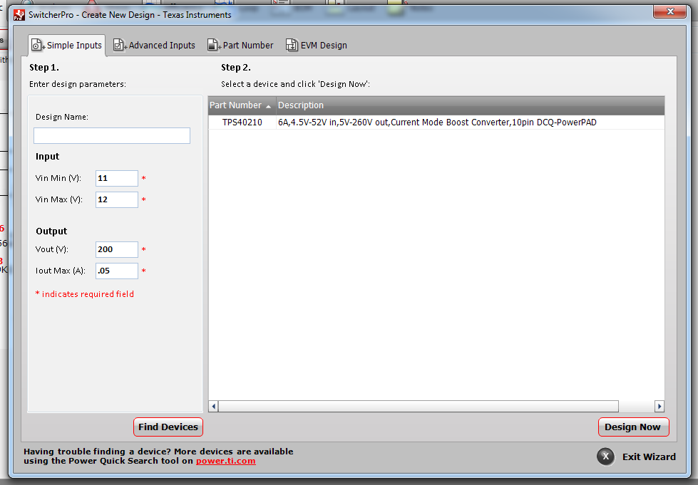 At first, I used Switcher Pro, and it said I should use the TPS40210, it was the only option showed:
