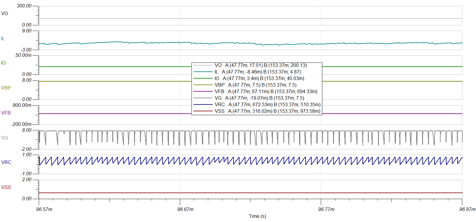 I can see that my controller is resetting itself, in the last picture I used a 10uF SS capacitor, same result with a 2.2uF but different period of time.