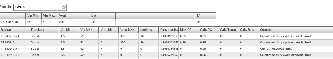 So I tried with webench tool, and it says that TPS40210 isn't suitable for my application: "Design cannot be created with this device. Please press OK and select a different device from the list Or click below to show why parts were not found."
