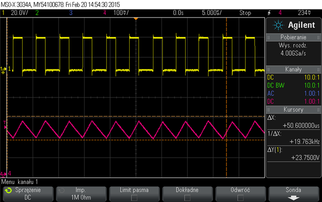 But when I start to decrease the input voltage then I can see some "stable instability" (see below)