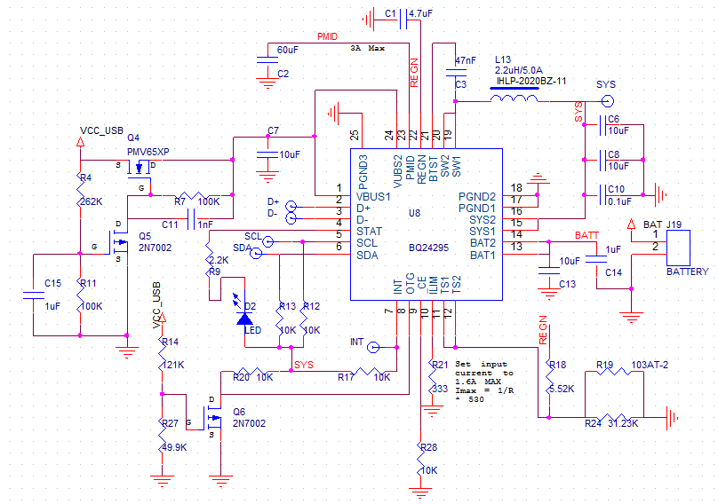 I am considering selecting the bq24195 to be used as an autonomous charger/NVDC power path such that when the device is plugged in to a DCP wall charger/ PC USB port it is charging the battery as well as supplying power to the system load. When the DC power is removed the single cell is supplying the boost converter and running the system.