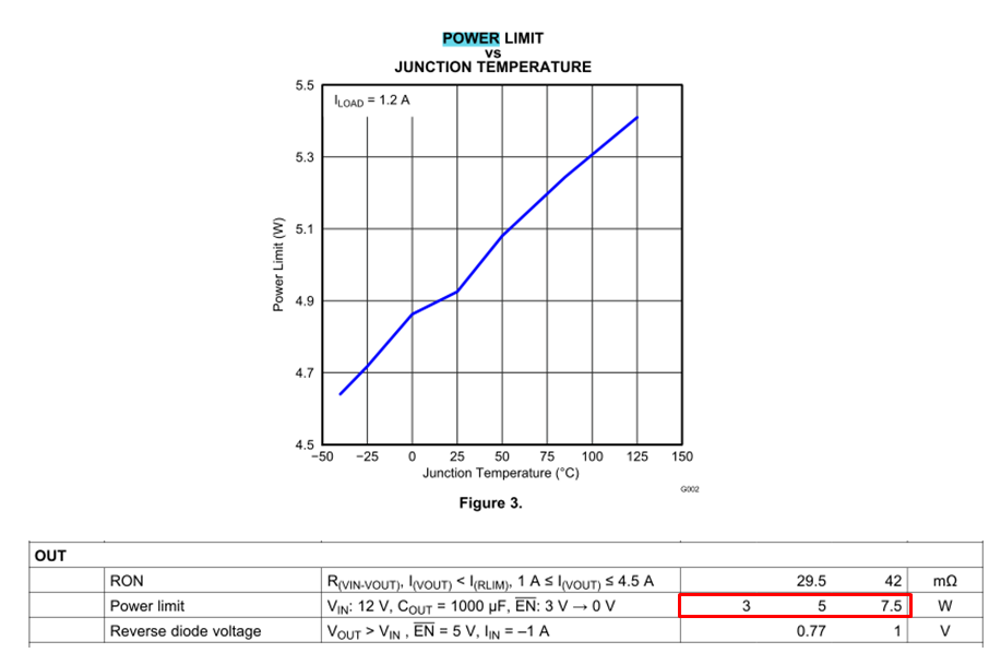 Could you tell me TPS25910 power limit dispersion reference data or one cases data.