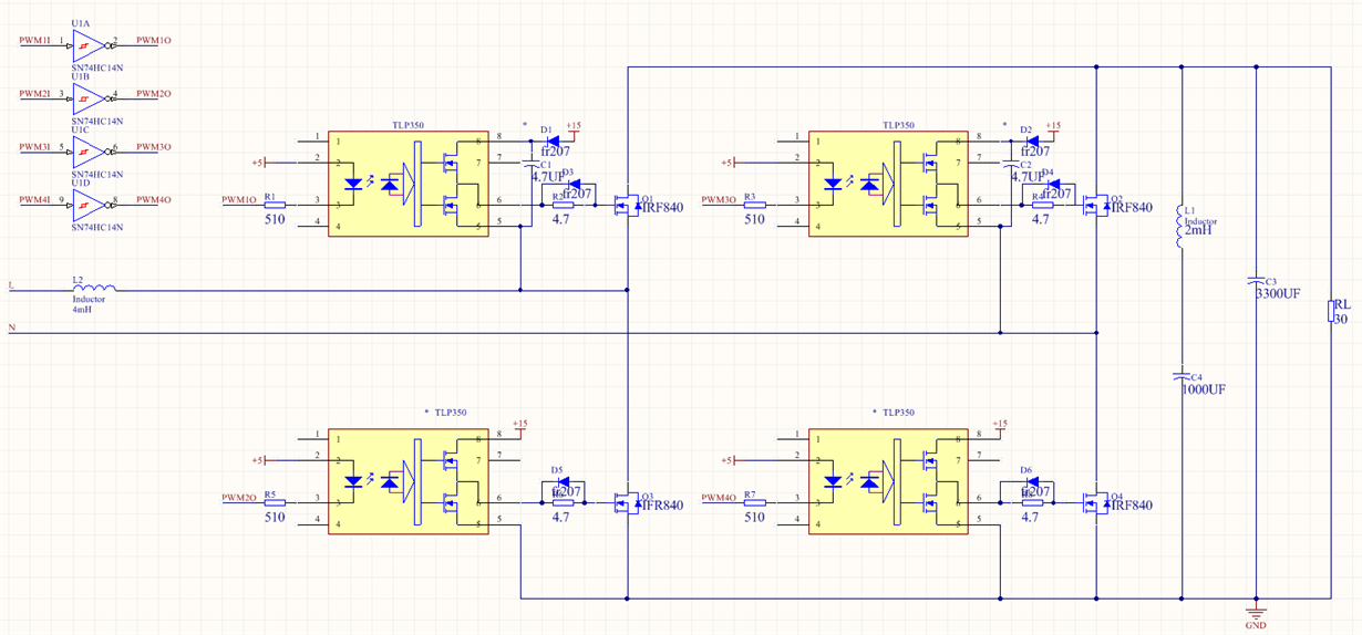 Will someone uses a single-phase PWM Rectifier TMS320F28XX done it? I will open loop SPWM added to the four mosFET, but the input current is the same as the diode is a pulse waveform, and the first 1/4 mos very hot, I ask what it might be?