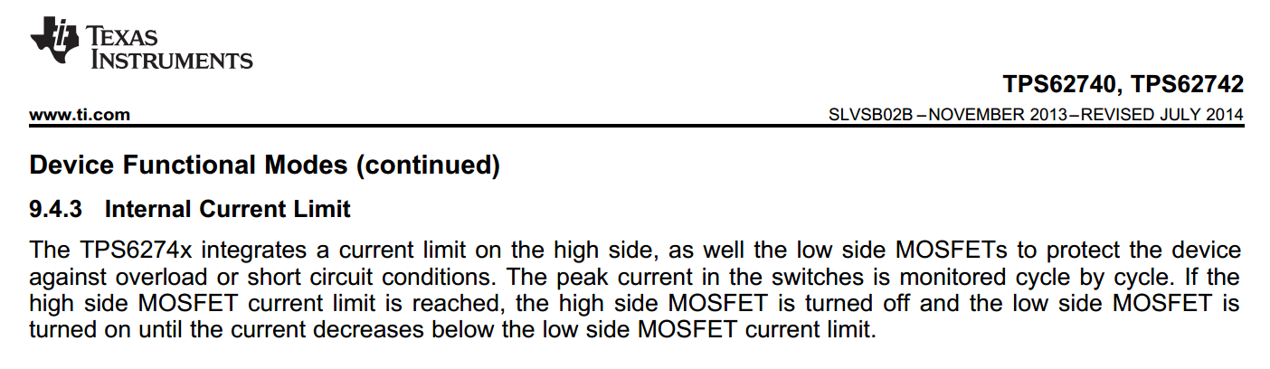 in the datasheet , there's a description about overload and short-circuit protection of this IC , but it's not about how this protection work (time,threshold...)